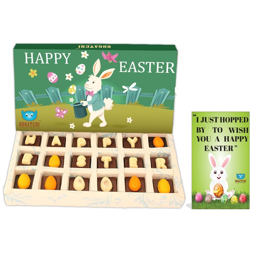 BOGATCHI Happy Easter Chocolates Easter Eggs and Chocolates for Easter Celebrations 18 Pieces + Free - Greeting Card for Happy Easter