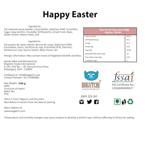 • SAFE DELIVERY - BOGATCHI Chocolates are shipped in Thermacol Insulated Box with ICE PACKS inside to maintain ambient temperature during transit to ensure BEST CHOCOLATY EXPERIENCE for its customers.