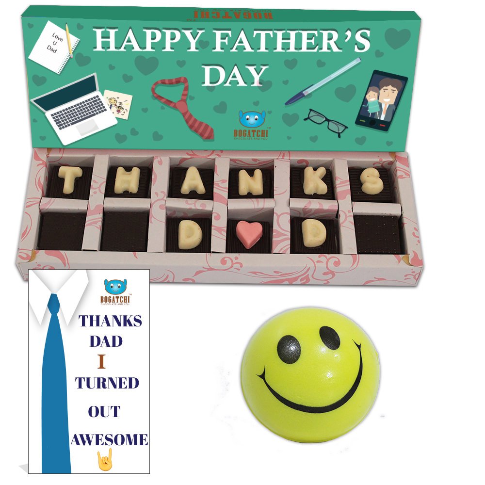 BOGATCHI Happy Father's Day Theme Gift Box Special Fathers Day Gift Thanks DAD Chocolate Box 12 pcs + Free - Smiley Ball + Fathers Day Greeting Card