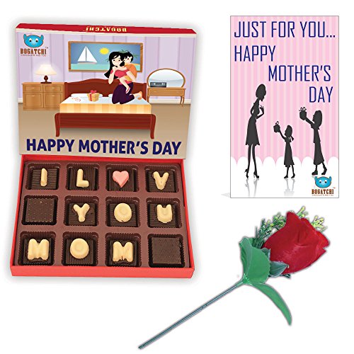 BOGATCHI Happy Mother's Day Theme Gift Box Best MOM Ever Dark Chocolate Box Special Mothers Day Gift from Son for Mother 12 pcs + Free - Mothers Day Greeting Card +Red Rose