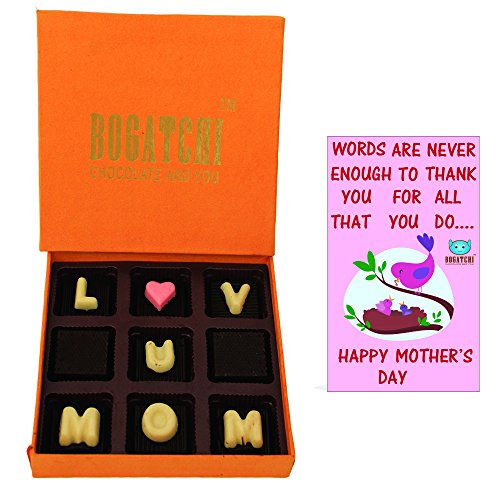 BOGATCHI Happy Mother's Day Theme Gift Box Love U MOM Chocolate Box Special Mothers Day Gift from Son 9 pcs + Free - Mothers Day Greeting Card