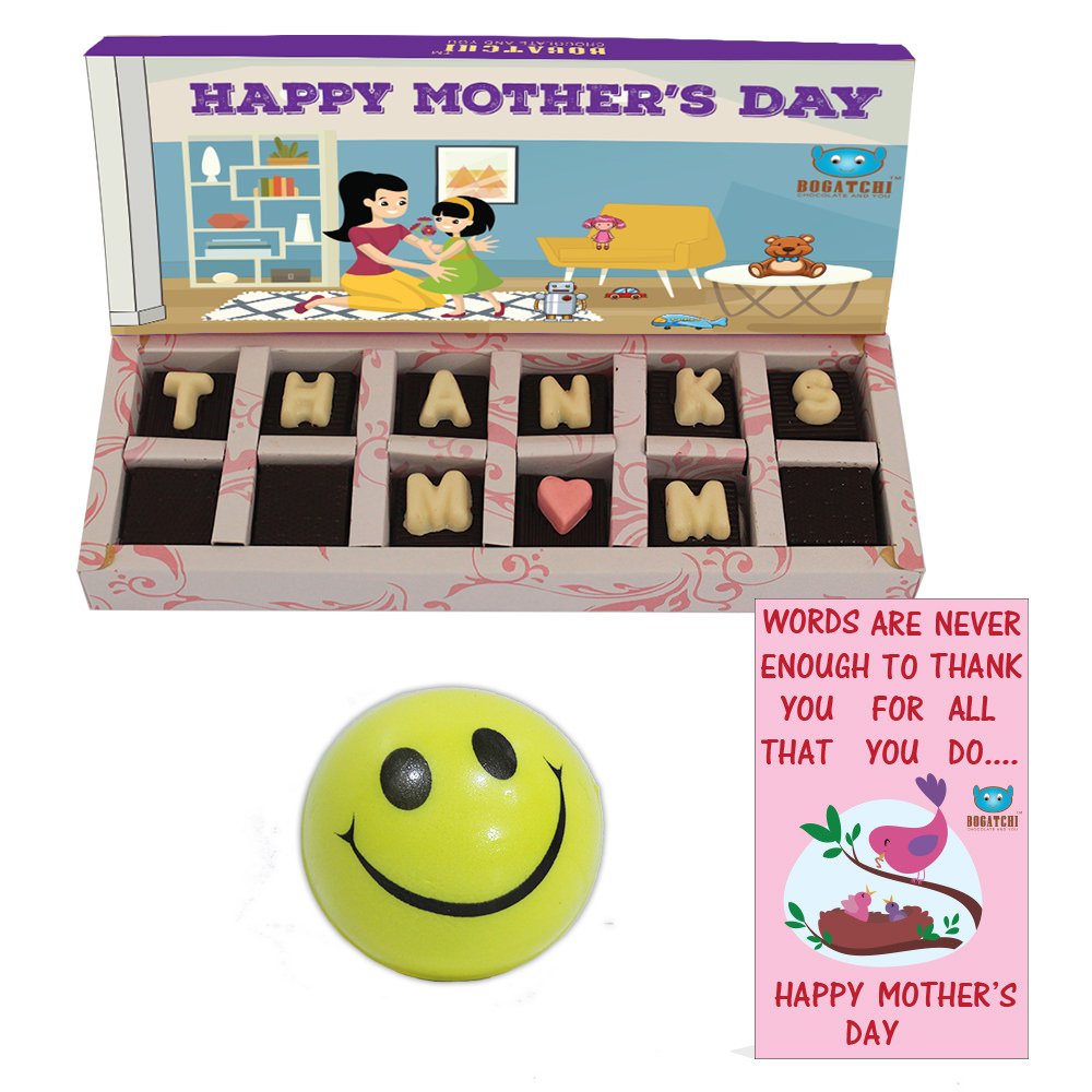 BOGATCHI Happy Mother's Day Theme Gift Box Special Mothers Day Gift Thanks MOM Chocolate Box 12 pcs + Free - Mothers Day Greeting Card + Smiley Ball