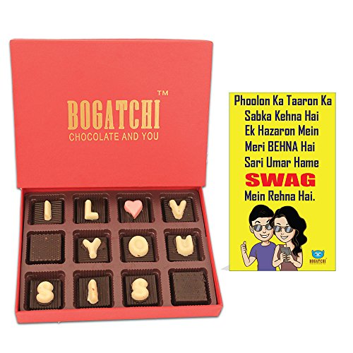 BOGATCHI Happy Rakhi Gift Box for Sister I Love You SIS Chocolate Box 12pcs + Free Rakhi Adorable Greeting Card