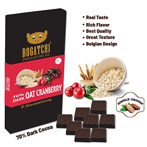 BOGATCHI Healthy Oats 70% Dark Chocolate with Cranberry Keto Chocolate 8pcs