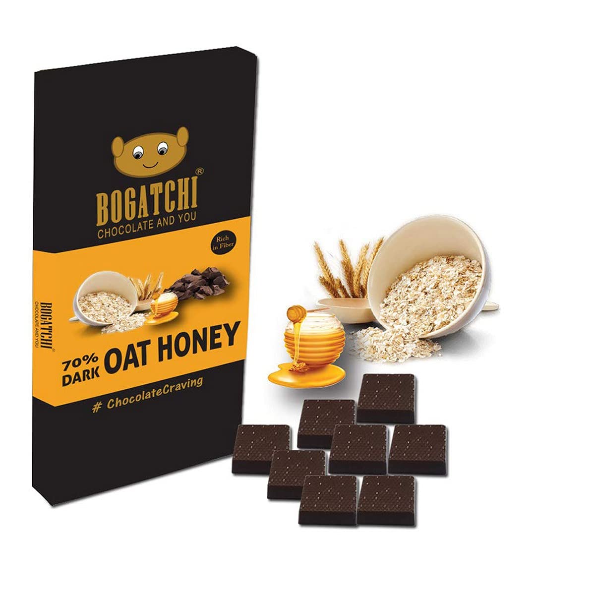 Bogatchi OATS Chocolate bar contains little Sugar. This makes the chocolate relatively healthier than regular chocolate with sugar. This product contains higher fiber and protein than normal chocolate. CAUTION - Bitterness in taste due to Cocoa is on the higher side.