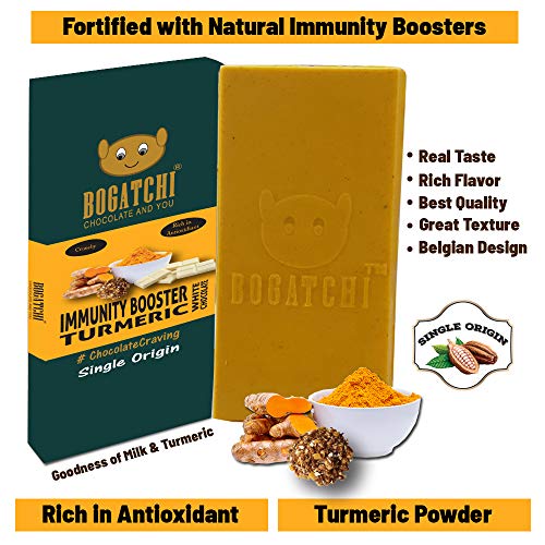 Bogatchi turmeric chocolate bar contains turmeric powder and milk with amazing taste. According to Ayurveda turmeric is the natural immunity booster. Lots of people in India still drink turmeric (haldi) milk on regular basis to build the internal strength of the immune system. Very good for kids as they can eat it like a regular chocolate. Helps fight against diseases and infections.