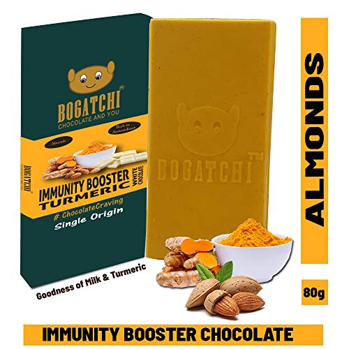 BOGATCHI Kids Chocolate with Natural Immunity Booster Turmeric Milk White Chocolate Bar Almonds 80g