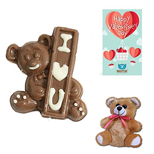 BOGATCHI Love Chocolate Teddy Best Valentine Day Chocolate Gift for Girlfriend- Boyfriend- Husband-Wife50g + Free Valentines Day Cards and Teddy