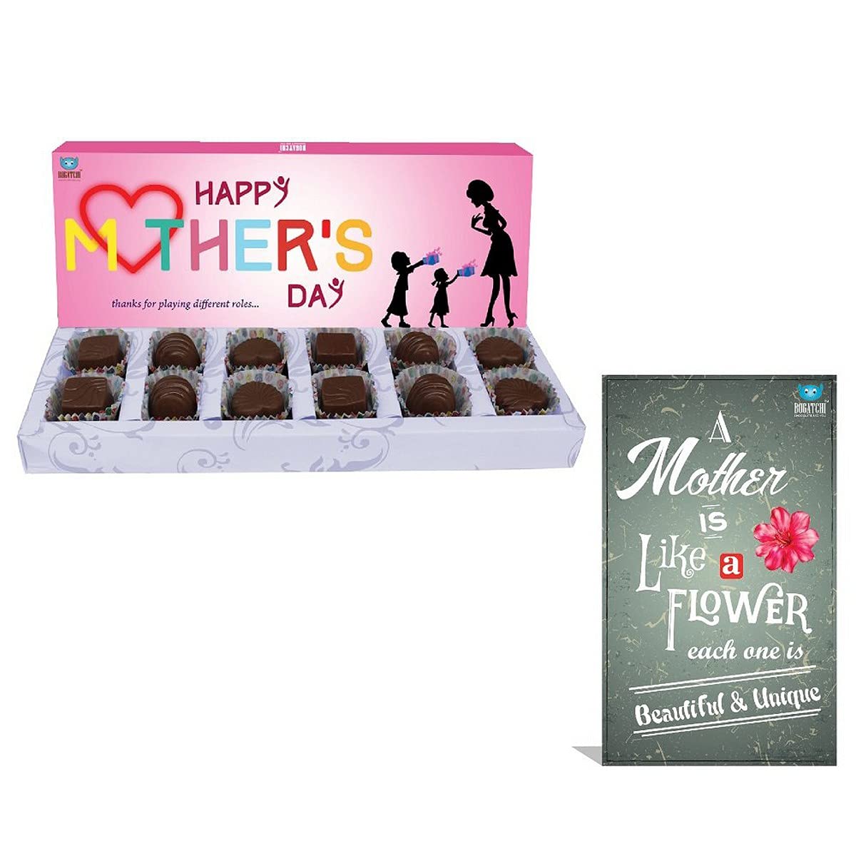 Bogatchi mother's day assorted chocolates. Luxurious delicious dark chocolates real treat for true chocolate lovers. Bogatchi chocolates are made up of fine quality cocoa power and rich cocoa butter.
