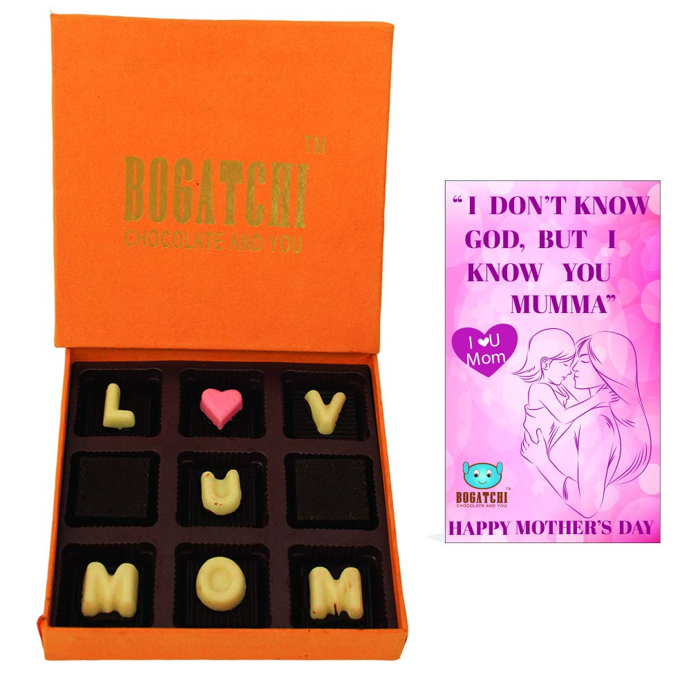 BOGATCHI Mothers Day Gift for mom Special Luv U MoM Chocolate Box 9 pcs + Free Mother's Day Card