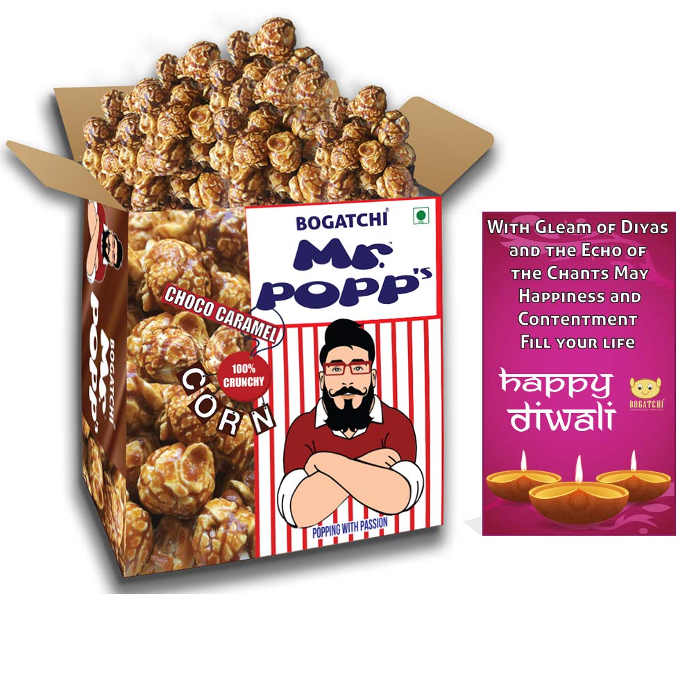 BOGATCHI Mr.POPP's Dark Chocolate Popcorn Best Diwali Gift 100% Crunchy Delicious Fully Popped Corns Handcrafted Gourmet Popcorn Snacks250g + Free Happy Diwali Greeting Card