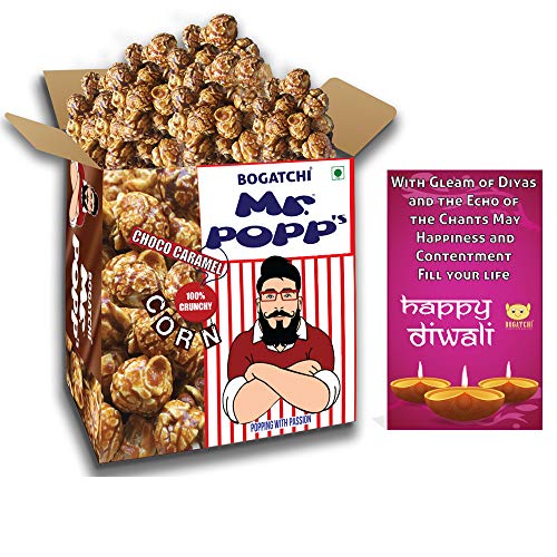 Bogatchi mr. Popp corn are handcrafted in old-fashioned copper kettles one batch at a time this popcorn is a crunchy and buttery caramel delight. Crafted in the India from quality ingredients. This caramelized popcorn is gluten-free cholesterol free and features non-gmo popcorn. It is high in dietary fiber and calcium. This caramel popcorn makes a great snack on the go for school work and home. Perfect snacks for movie time binge watching tv series marathon exam time snacking or just to make your self feel good. Bogatchi mr.Popp corn makes the best gift for celebration occasions like rakhi diwali anniversary birthday x-mas with loved ones. The chocolate caramel popcorn has dark chocolate dripped on the top of caramelized popcorn making these yummy. You will find chocolate on each and every bite of the popped corns. Enjoy with family and friends!