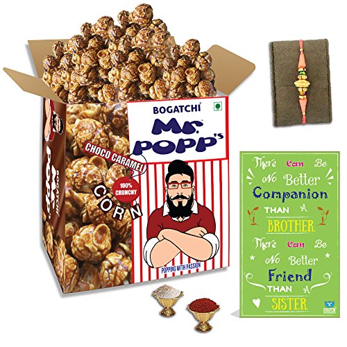 Bogatchi mr. Popp corn are handcrafted in old-fashioned copper kettles one batch at a time this popcorn is a crunchy and buttery caramel delight. Crafted in the India from quality ingredients. This caramelized popcorn is gluten-free cholesterol free and features non-gmo popcorn. It is high in dietary fiber and calcium. This caramel popcorn makes a great snack on the go for school work and home. Perfect snacks for movie time binge watching tv series marathon exam time snacking or just to make your self feel good. Bogatchi mr.Popp corn makes the best gift for celebration occasions like rakhi diwali anniversary birthday x-mas with loved ones. The chocolate caramel popcorn has dark chocolate dripped on the top of caramelized popcorn making these yummy. You will find chocolate on each and every bite of the popped corns. Enjoy with family and friends!