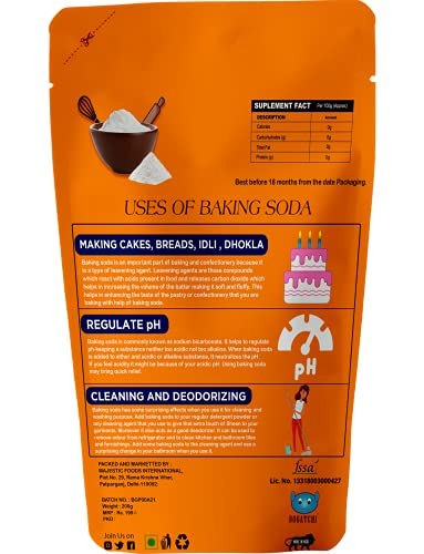 • Baking soda is a leavening agent used in baked and non baked goods . Make Fluffiest Cakes Breads doughnuts muffins cookies Idlis Dhokla Bhature Mathi using BOGTCHI 100% PURE baking soda