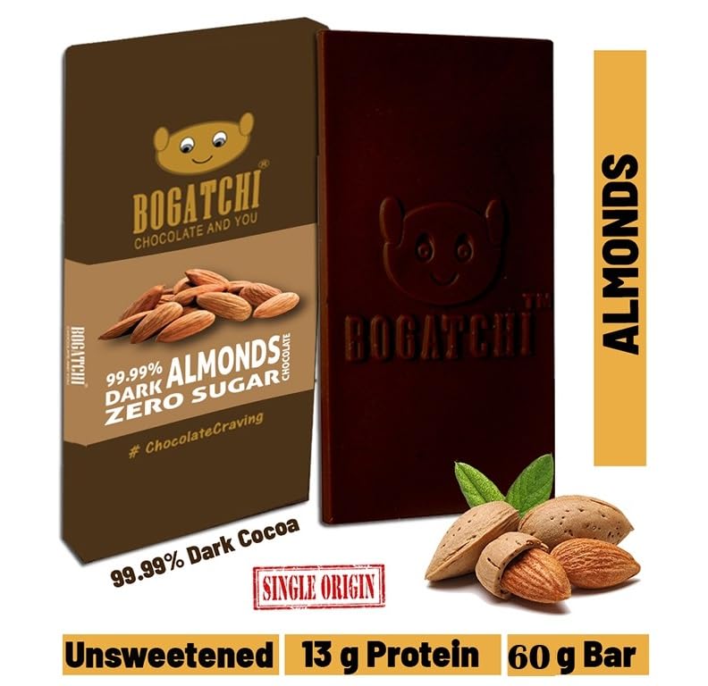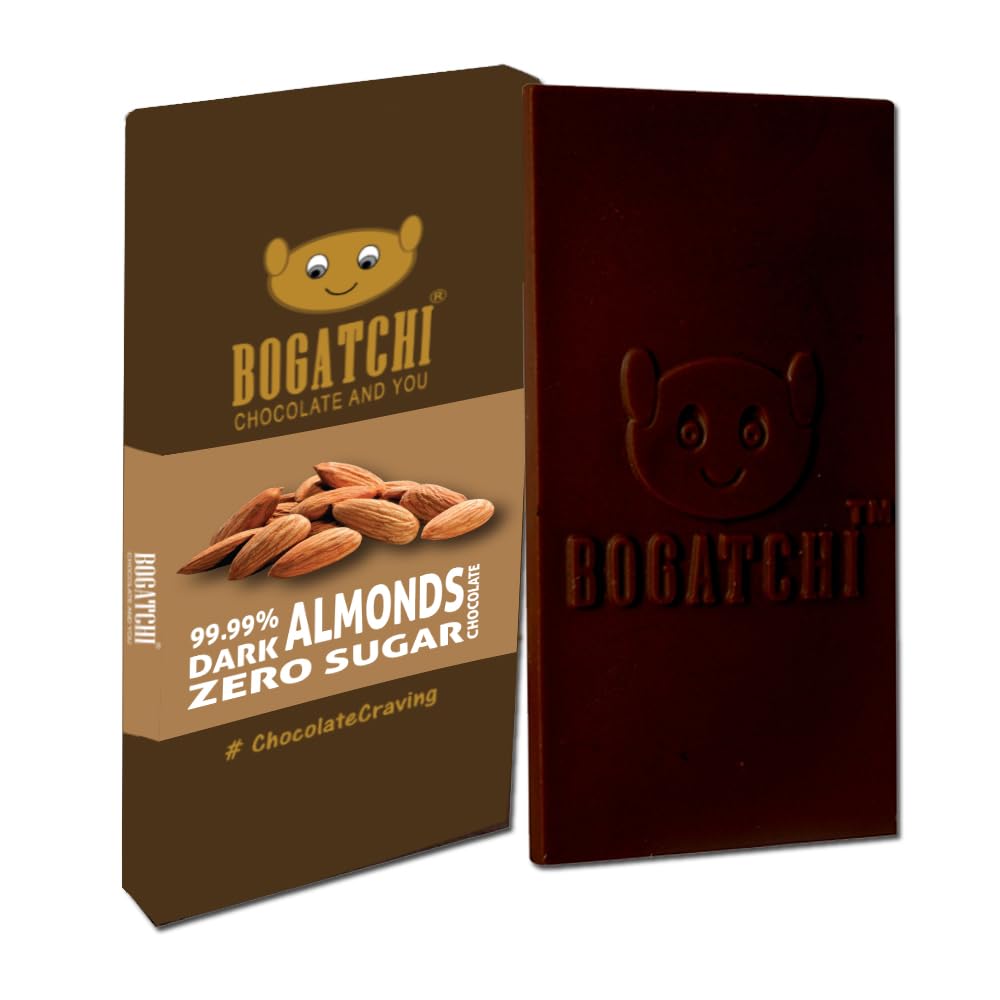 BOGATCHI Premium 99% Dark Chocolate | Almonds | Real Cocoa Intense Dark Chocolate 60 gm