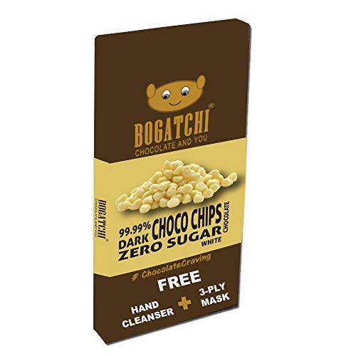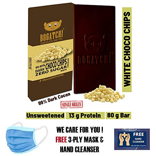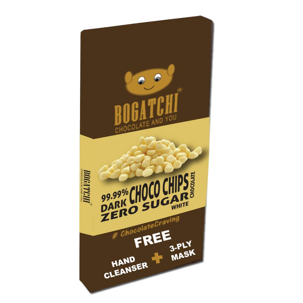 BOGATCHI Premium 99% Dark Chocolate | White CHOCOCHIPS| Real Cocoa Intense Dark Chocolate 80 gm