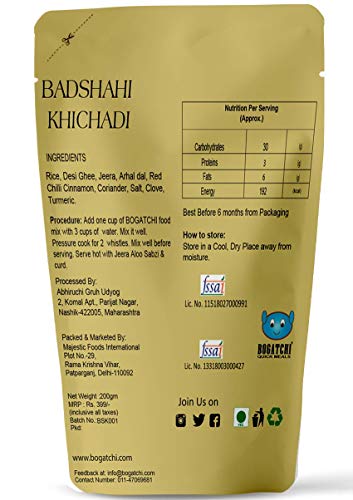 BOGATCHI Ready to Cook BADSHAHI KHICHDI is a QUICK MEAL for You Ready to Cook Meal Serves 2 in 1 Pack Easy to make Delicious and Tasty Meal Just in 10 Minutes