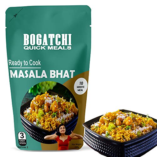 BOGATCHI Ready to Cook MASAL BHAT is a QUICK MEAL for You Ready to Cook Meal Serves 2 in 1 Pack Easy to make Delicious and Tasty Meal Just in 10 Minutes