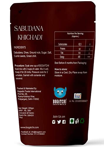 BOGATCHI Ready to Cook SABUDANA KHICHDI is a QUICK MEAL for You Ready to Cook Meal Serves 2 in 1 Pack Easy to make Delicious and Tasty Meal Just in 10 Minutes