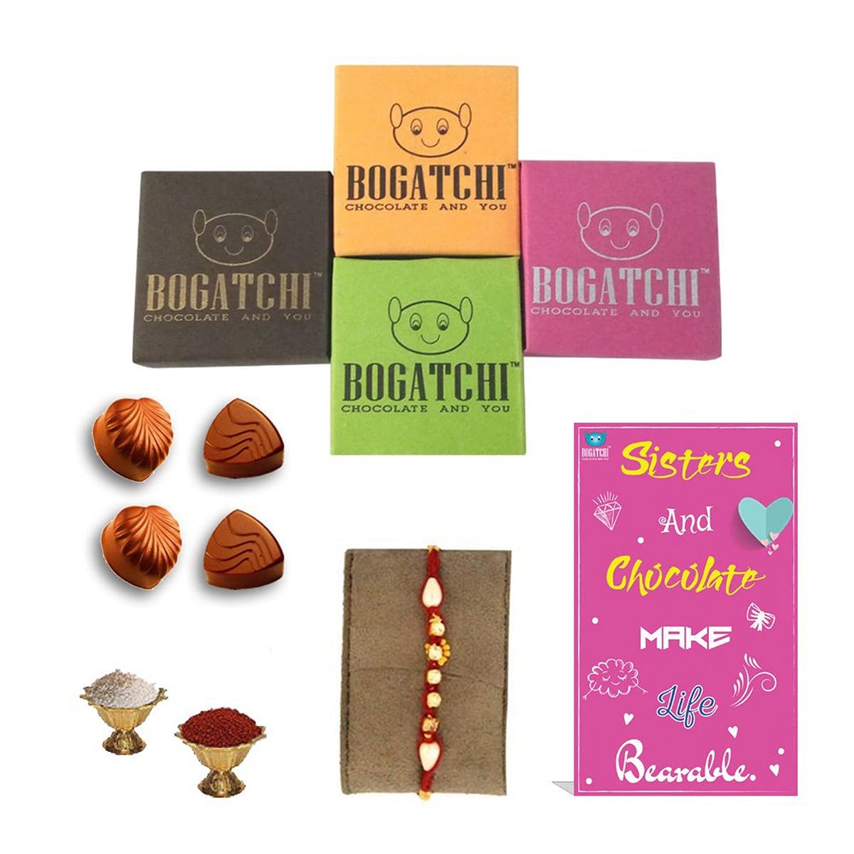 • BOGATCHI Chocolates best gift for RAKHI. PERSONALIZED Chocolates for Rakhi Hand made Chocolates as Rakhi Gift. The Chocolates say it all. Best Rakhi Gift for Brother.
