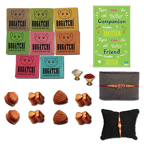 BOGATCHI Rakhi Chocolates for Brother Assorted Chocolates 8 pcs + 2 Rakhi + Roli Chawal + Free Rakhi Card