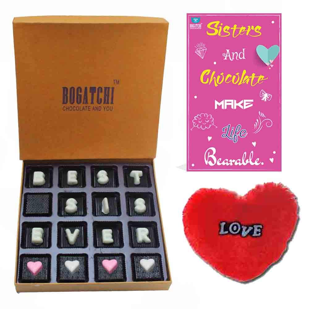 BOGATCHI Rakhi Chocolates for Sister Best SiS Ever Chocolates Box 16 pcs + Fur Heart + Free Rakhi Card