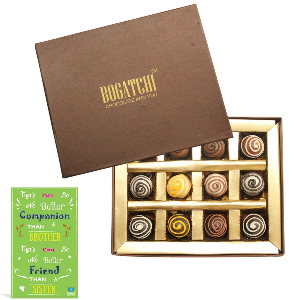 • BOGATCHI Chocolates best gift for sister on RAKHI. PERSONALIZED Chocolates for Rakhi Hand made Chocolates as Rakhi Gift. The Chocolates say it all. Best Rakhi Gift for sister.