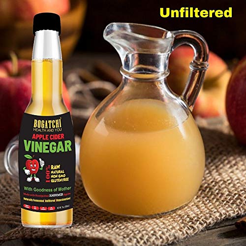 BOGATCHI apple cider vinegar is made of handpicked Kashmir apples. The process is natural fermentation and packaging with no filtering no pasteurization and no dilution. The apples are allowed to age naturally. Made with strand of mother contains natural proteins vitamins and good bacteria. Product benefits: rich in enzymes & potassium support a healthy immune system helps control weight promotes digestion & ph balance helps soothe dry throats helps remove body sludge toxins; personal benefits: helps maintain healthy skin helps promote youthful healthy bodies soothes irritated skin relieves muscle pain from exercise.