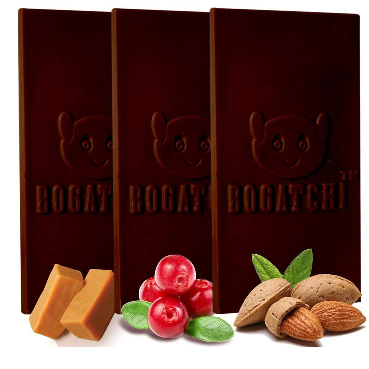 BOGATCHI Signature 99% Dark Chocolate |3in1 (Butterscotch Cranberry Almonds)| Real Cocoa Intense Dark Chocolate 80 gm