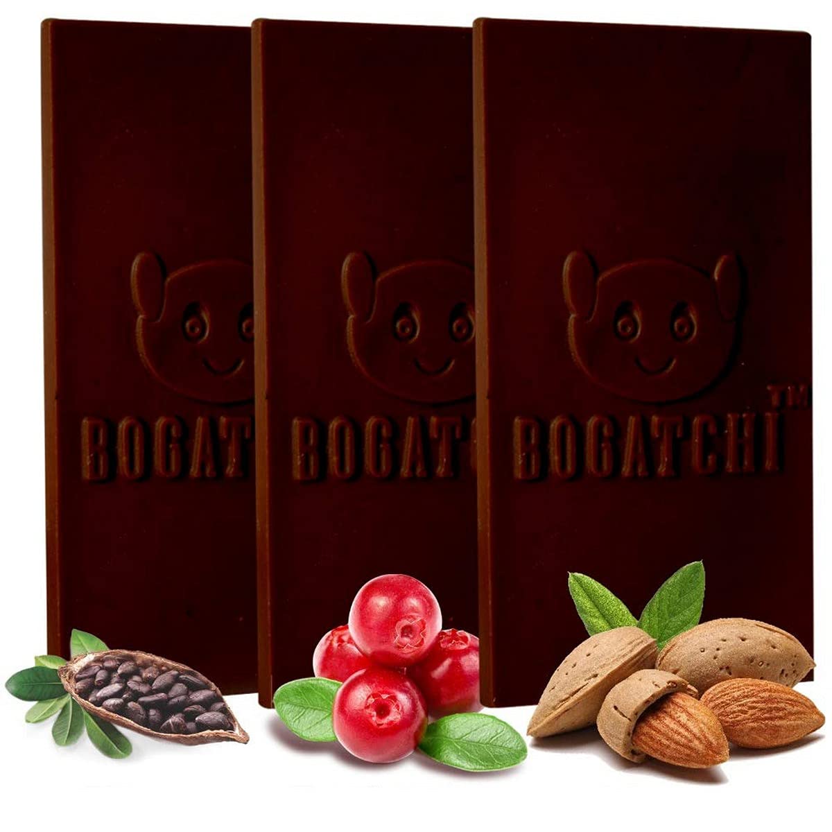 BOGATCHI Signature 99% Dark Chocolate |3in1 (Pure Cranberry Almonds)| Real Cocoa Intense Dark Chocolate 80 gm