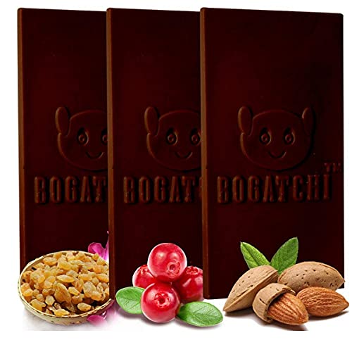 BOGATCHI Signature 99% Dark Chocolate |3in1 (Raisins Cranberry Almonds)| Real Cocoa Intense Dark Chocolate 80 gm