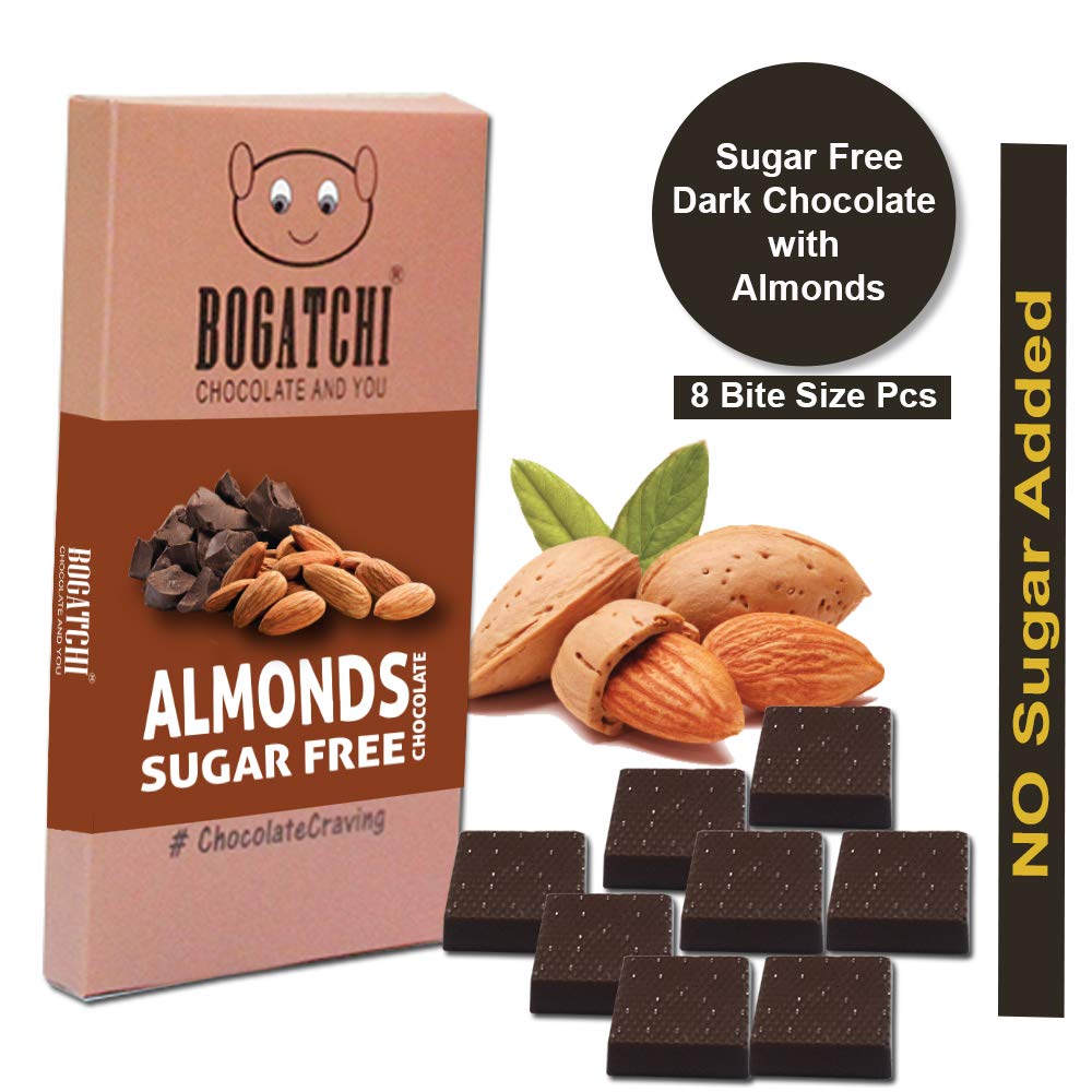 BOGATCHI Sugar Free Healthy Chocolate Bites with Almonds 8 Pcs