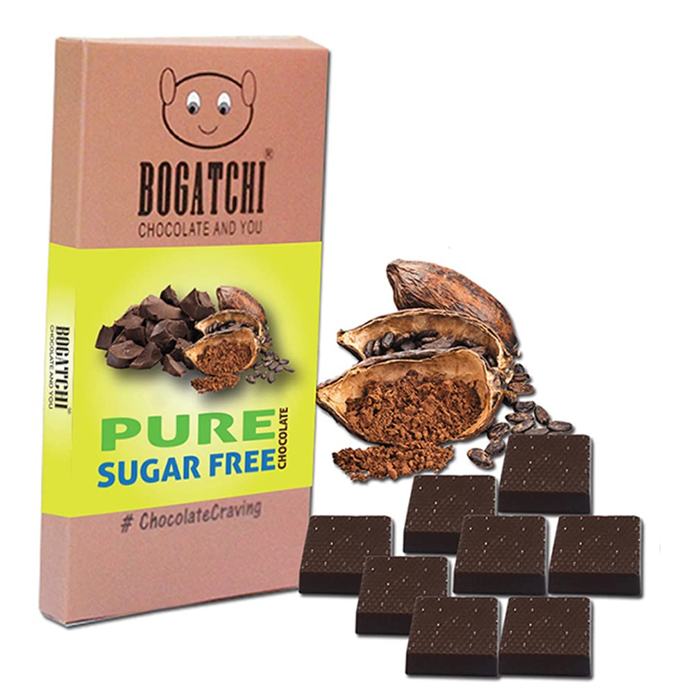 Bogatchi sugar free chocolate bar contains no sugar. The sweetener used is maltitol which is a standard sugar substitute. This makes the chocolate relatively healthier than regular chocolate with sugar. This product contains zero carbohydrates from sugar. Caution - diabetes patients should consult doctor before consuming.