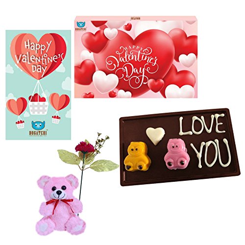 BOGATCHI Valentine Chocolate for Wife Valentines Day Chocolates Valentines Day Gift Hamper Cute Teddy Chocolate 110g + Free - Teddy and Red Rose + Free Valentine's Day Greeting Card