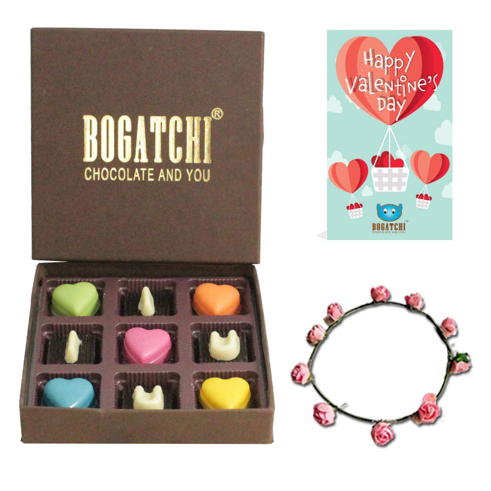 BOGATCHI Valentine Day Chocolate Box -I Love You- for Girlfriend- Boyfriend- Wife- Husband 9pcs + Free Valentines Day Cards and Tiera
