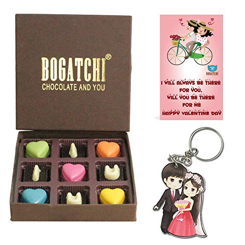 BOGATCHI Valentine Day Chocolate Box -I Love You- for Girlfriend- Boyfriend- Wife- Husband 9pcs + Free Valentines Day Story Cards and Couple Key Chain