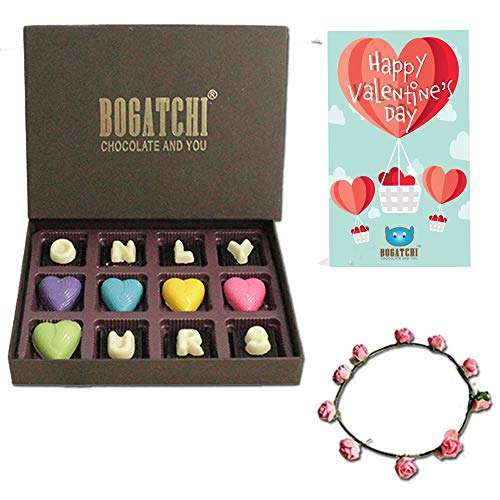 BOGATCHI Valentine Day Chocolate Box Only URS for Girlfriend- Boyfriend- Wife- Husband 12pcs + Free Valentines Day Cards and Tiera
