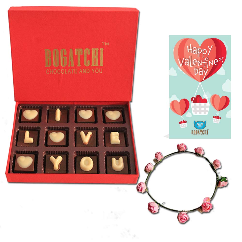BOGATCHI Valentines Day Chocolate Gift Love Box 120g + Free V-Day Card + Free Tiara