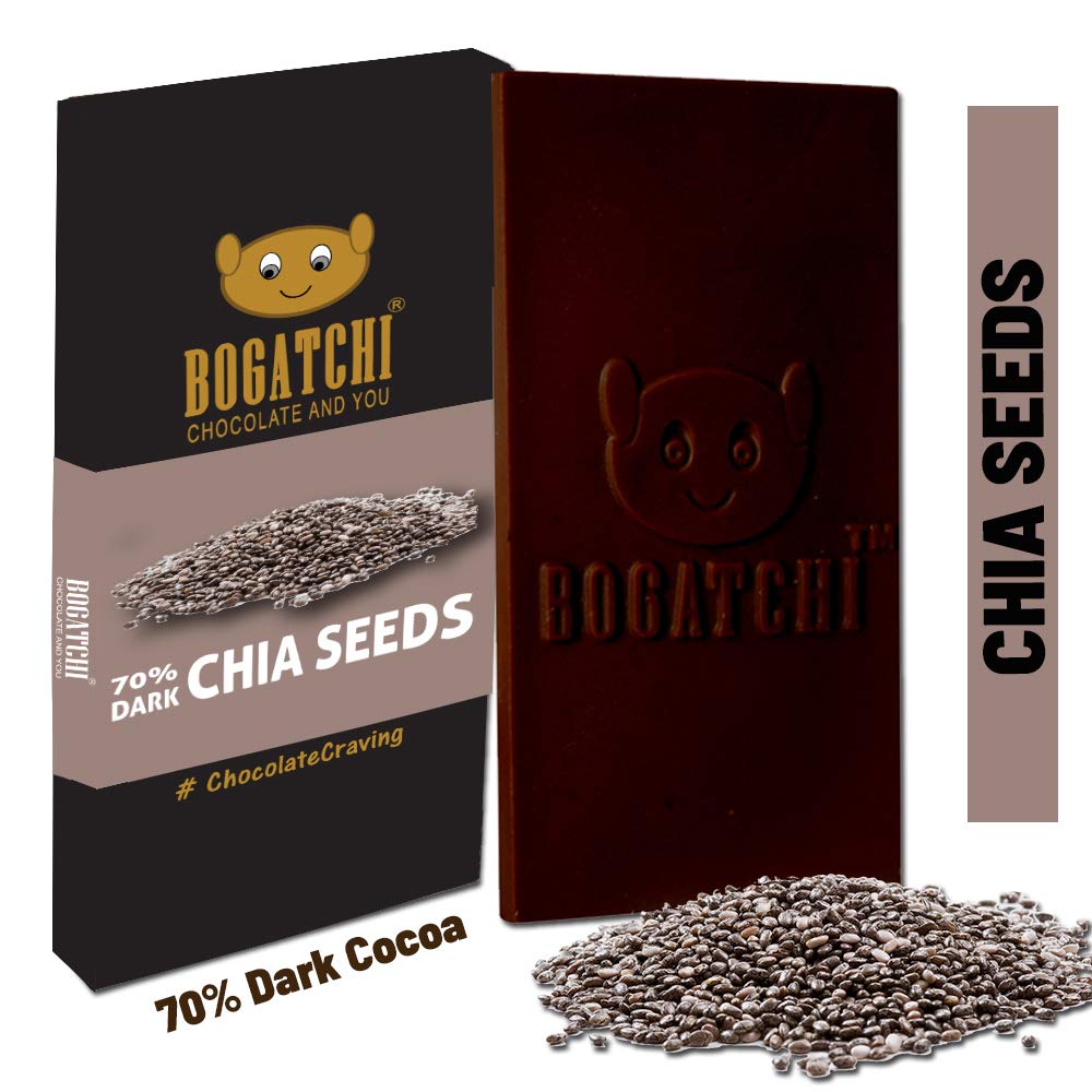BOGATCHI Vegan Chocolate | 70% Dark | CHIA Seeds | Gluten Free 80 gm