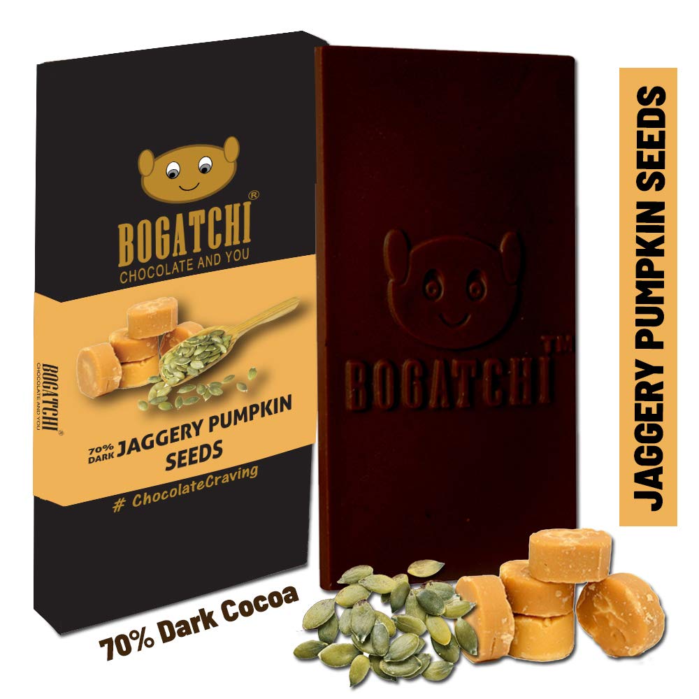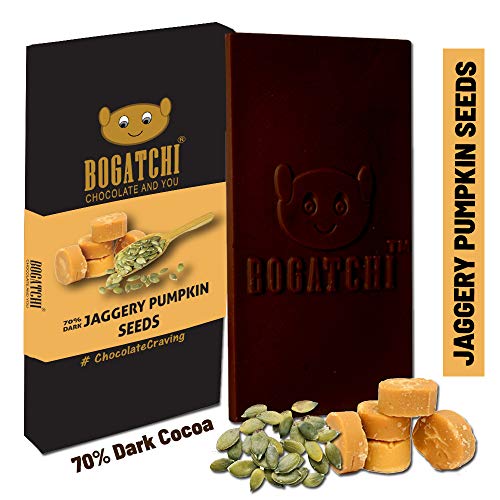 Bogatchi 70% dark chocolate is made of cocoa powder and cocoa butter. It is absolutely vegan and gluten free. Best for those who like raw rough and bitter taste of chocolate. Ideal for real chocolate lovers. Really bitter in taste but amazing feel of raw chocolate and smell of chocolate. No added sugar only sweetened with jaggery