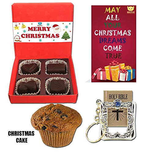 BOGATCHI Xmas Premium Gift Set Xmas Plum Cake (40g) Xmas Dark Chocolates Box + Free Merry Xmas Card + Free Holy Bible Keychain