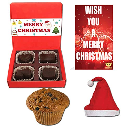 BOGATCHI Xmas Premium Gift Set Xmas Plum Cake (40g) Xmas Dark Chocolates Box + Free Merry Xmas Card + Free Santa Cap