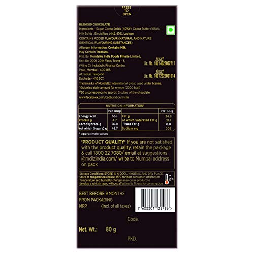Bournville rich cocoa chocolate is irresistible and specially created to savour the palate with 50 percent cocoa and an ever so smooth texture each little chunk is dark and undeniably good!‚ The finest cocoa beans that have the perfect size and aroma go in to the making of the Bournville offering consumers the sheer luxury and goodness of premium dark chocolate.