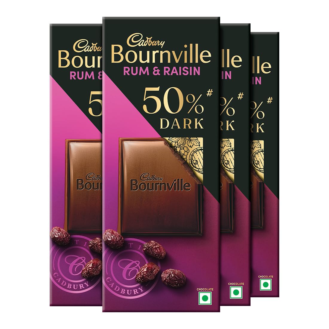 Cadbury Bournville is a premium dark chocolate that delivers an intense fine and indulgent experience to lovers of dark chocolate! Each Bournville dark chocolate bar is made from the finest cocoa sourced from some of the best places around the world perfectly roasted for an intense taste. Dark chocolate with lower quantities of sugar is known for its health benefits. Cadbury Bournville is made from the finest ingredients that give you a rich intense lingering taste. This dark chocolate pack is perfect to gift or to reward yourself with an immersive intense experience. Along with this Rum & Raisin dark chocolate also try other variants of Bournville dark chocolate 50% dark 70% dark cranberry and fruit & nut. Every chocolate box of Cadbury Bournville is made from 100% sustainably sourced cocoa. It is suitable for vegetarians.