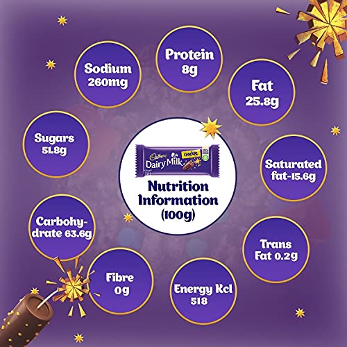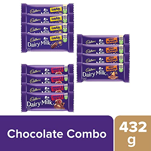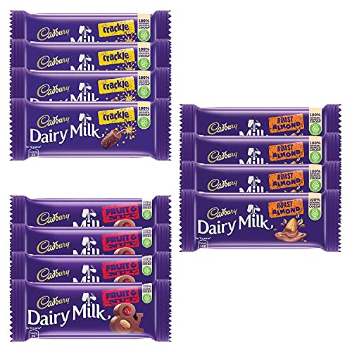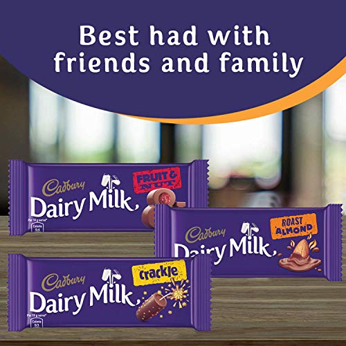 Cadbury Dairy Milk Chocolate is for those everyday moments of joy that you want to share with your near and dear ones with something sweet. Just one bite will take you into the world of warmth happiness and spontaneous fun. Rich smooth and creamy Classic Milk Chocolate which gives you more joy in every bite. This combo contains 4 packs of Cadbury Dairy Milk fruit & nut 36g 4 packs of Cadbury Dairy Milk roasted almond 36g and 4 packs of Cadbury Dairy Milk crackle 36g.