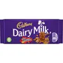 Deliciously creamy Cadbury dairy milk milk chocolate scattered with golden chunks of Daim - snap off a piece for irresistible crunchiness and smoothness in every bite! Cadbury deliciously creamy milk chocolate with crunchy almond caramel pieces made with a glass and a half of fresh milk generous 120g bar - perfect for sharing with friends and family packed in our special easy-open easy close wrapper.