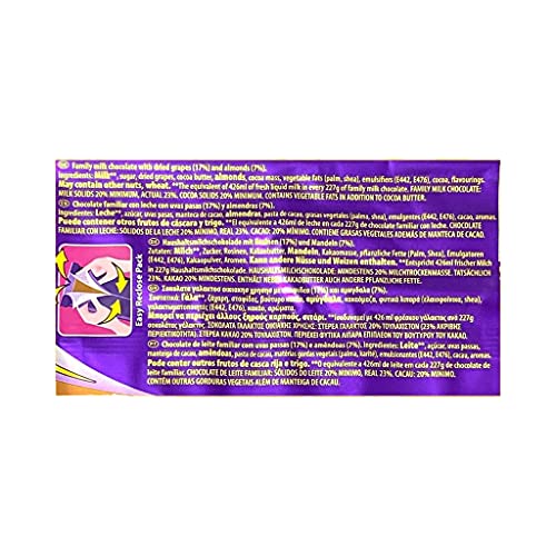 This product is from Cadbury brand. To create fruit and nut our chocolatiers enter a secret orchard and shake enchanted trees until delicious sultanas and almonds fall from the branches right into baskets of dreamy Cadbury dairy milk chocolate waiting below. Skipping back to the factory they bring home the perfect chocolate harvest.