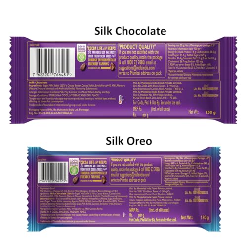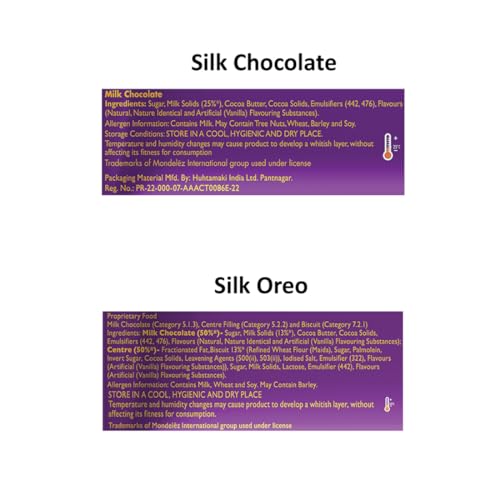 Cadbury Dairy Milk Silk is all about regaling in the richness and creaminess of the chocolate. Indulge in a rich smooth and creamy celebration. Silk: The classic taste of Cadbury Dairy Milk chocolates only more creamy more smooth more indulging. Cadbury Dairy Milk Silk Oreo is a delicious combination of Silk Chocolate Flavour & Crunchy Oreo. This milk chocolate bar combo is perfect sweet for snacking & storing in the fridge or as a chocolate gift pack for special occasions like birthdays and get-togethers.Every bar of Cadbury Dairy Milk Silk Chocolate Bar is made from 100% sustainable cocoa. It is suitable for vegetarians.