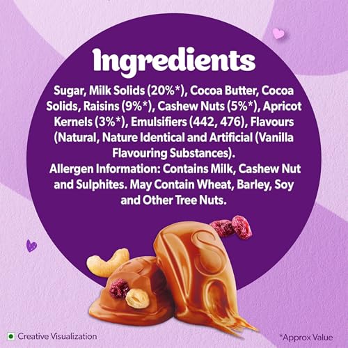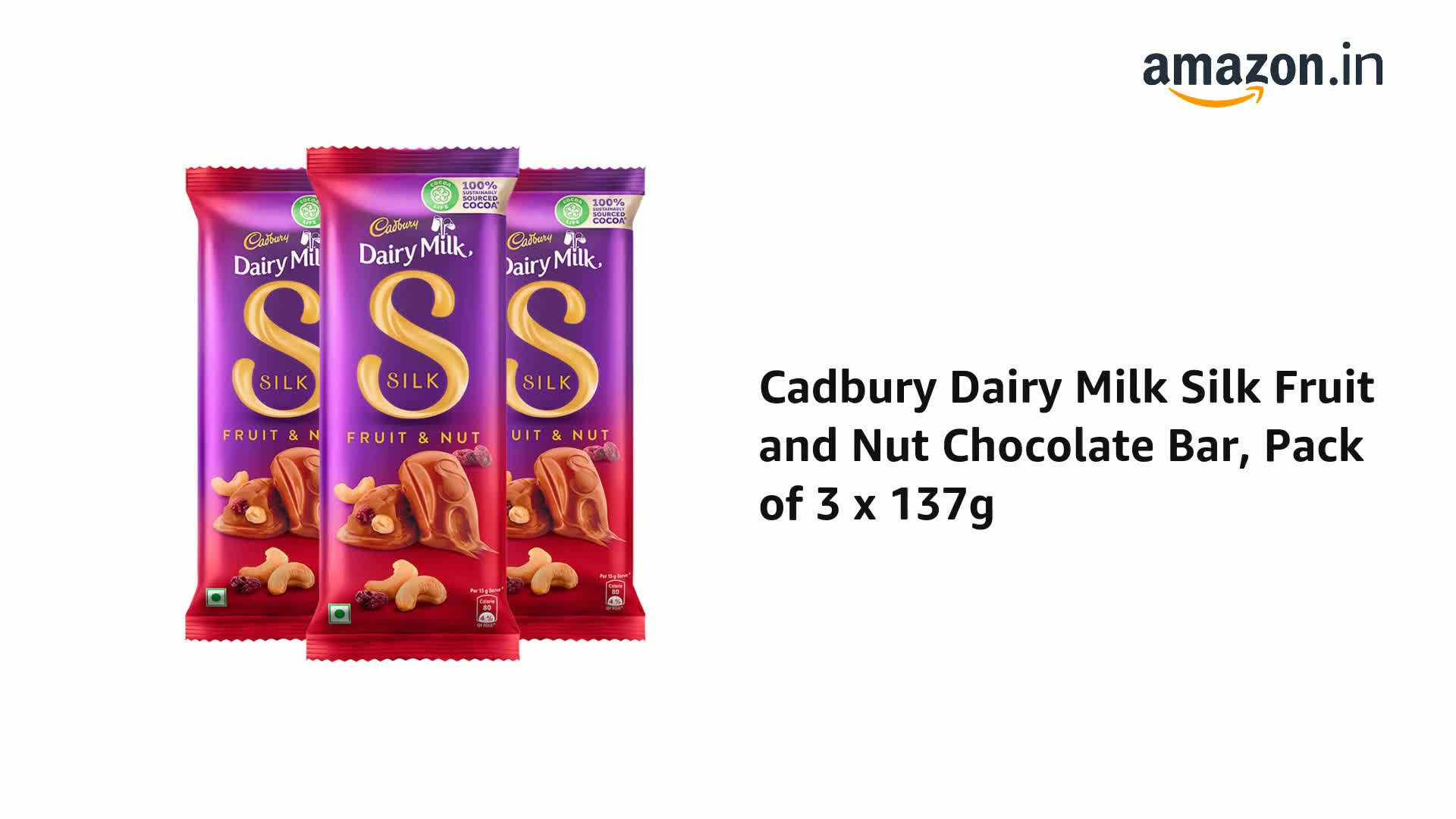 Cadbury Dairy Milk Silk is all about regaling in the richness and creaminess of chocolate. Indulge in a rich smooth and creamy celebration. Silk: The classic taste of Cadbury Dairy Milk chocolates only more creamy more smooth more indulging. Cadbury Dairy Milk Silk Fruit and Nut is made with a glass and a half of milk and offers a delicious combination of combination of creamy milk chocolate and almonds & raisins. This milk chocolate bar is a perfect sweet to indulge in all alone or as a chocolate gift pack for gifting on special occasions like birthdays and get-togethers. Every bar of Cadbury Dairy Milk Silk is made from 100% sustainably sourced cocoa. It is suitable for vegetarians.