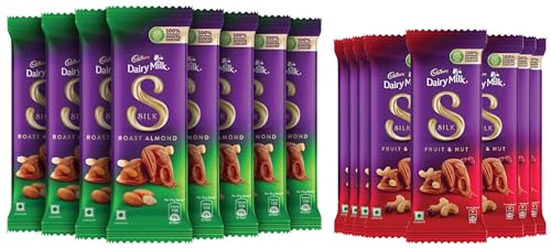 Cadbury Dairy Milk Silk Fruit & Nut Chocolate Bar Pack of 8 x 55gCadbury Dairy Milk Silk is all about regaling in the richness and creaminess of the chocolate. Indulge in a rich smooth and creamy celebration. Silk: The classic taste of Cadbury Dairy Milk chocolates only more creamy more smooth more indulging. Cadbury Dairy Milk Silk Fruit & Nut is a delicious combination of creamy milk chocolate and almonds & raisins. This pack contains 8 bars of Silk Fruit & Nut delivered safely with a cool gel pack. Every bar of Cadbury Dairy Milk Silk is made from 100% sustainably cocoa. It is suitable for vegetarians.Cadbury Dairy Milk Silk Roast Almond with whole nuts Chocolate Bar Pack of 8 x 58gCadbury Dairy Milk Silk is all about regaling in the richness and creaminess of the chocolate. Indulge in a rich smooth and creamy celebration. Silk: The classic taste of Cadbury Dairy Milk chocolates only more creamy more smooth more indulging. Cadbury Dairy Milk Silk Roast Almond is a delicious combination of creamy milk chocolate & roasted almonds. This pack contains 8 bars of Silk Roast Almond and Whole Nuts delivered safely with a cool gel pack. Every bar of Cadbury Dairy Milk Silk is made from 100% sustainably cocoa. It is suitable for vegetarians.